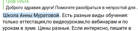 Если у вас есть еще отзывы о данной школа Анны Муратовой, то напишите пожалуйста мне об этом в телеграм